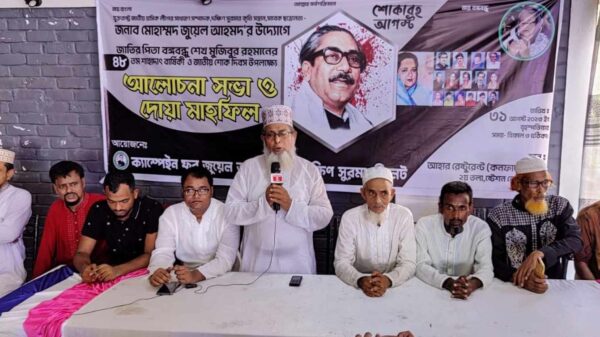 নিজস্ব প্রতিবেদক::জাতির পিতা বঙ্গবন্ধু শেখ মুজিবুর রহমানের ৪৮ তম শাহাদাৎ বার্ষিকী ও জাতীয় শোক দিবস উপলক্ষে ক্যাম্পেইন ফর জুয়েল আহমদ গ্রুপের উদ্যোগে আলোচনা সভা ও দোয়া মাহফিলের আয়োজন করা হয়েছে।